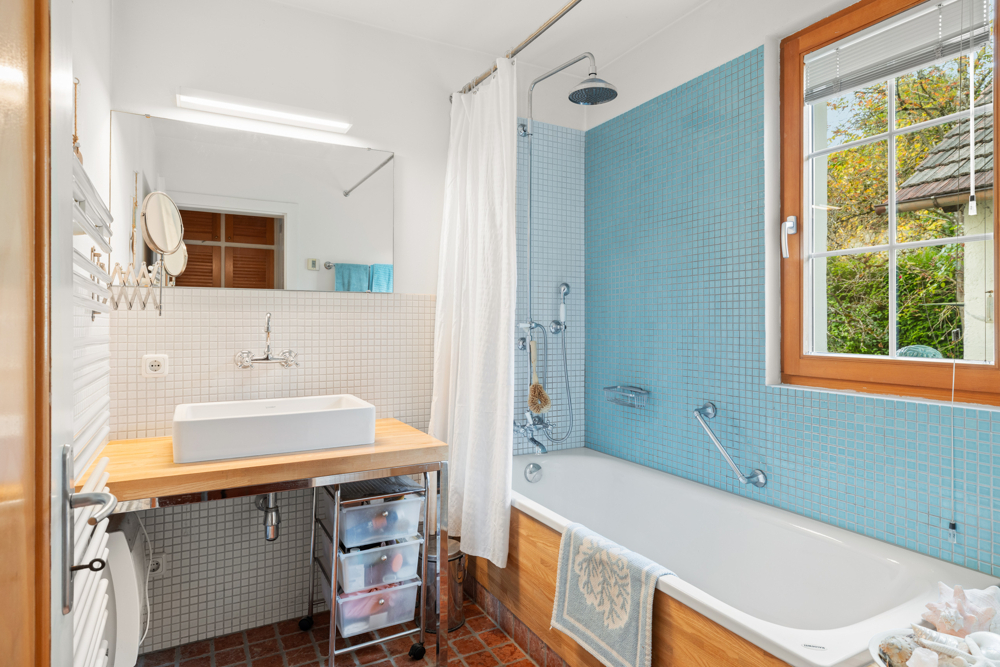 - Einzelwaschtisch, Waschtischverbau, Badewanne, WC, Gäste-WC