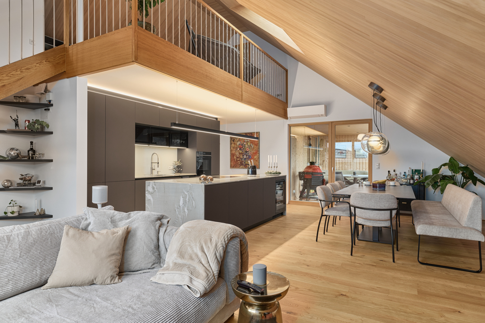 • Stilvolle Holzelemente & gemütliche Dachschrägen